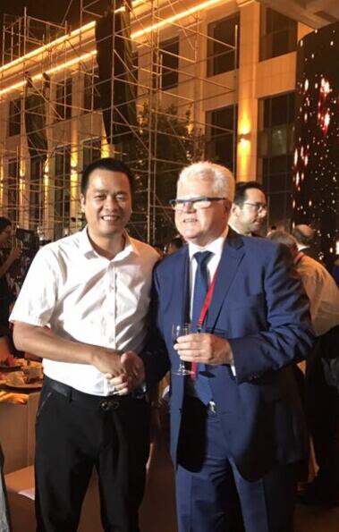 連云港市門窗協會會長潘國柱和德國墨瑟董事長墨瑟先生親切交流