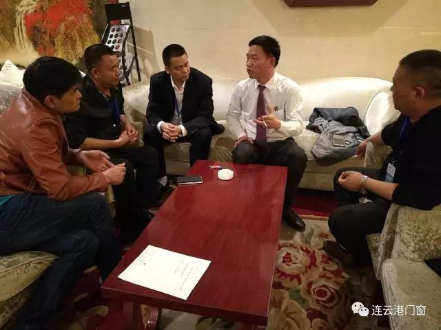 連云港市門窗協會領導一行和本次宣貫會主辦方山東智贏門窗系統有限公司董事長王令軍先生在一起交流門窗技術和市場趨勢。