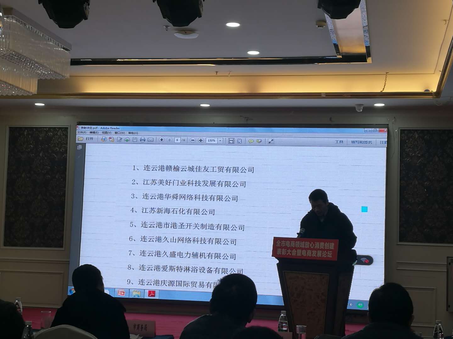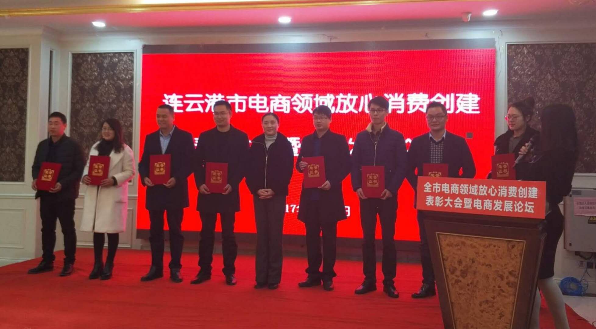 江蘇美好門業(yè)科技發(fā)展有限公司董事長(zhǎng)潘國(guó)柱,參加“全市電子商務(wù)放心消費(fèi)創(chuàng)建示范網(wǎng)站”表彰大會(huì)。