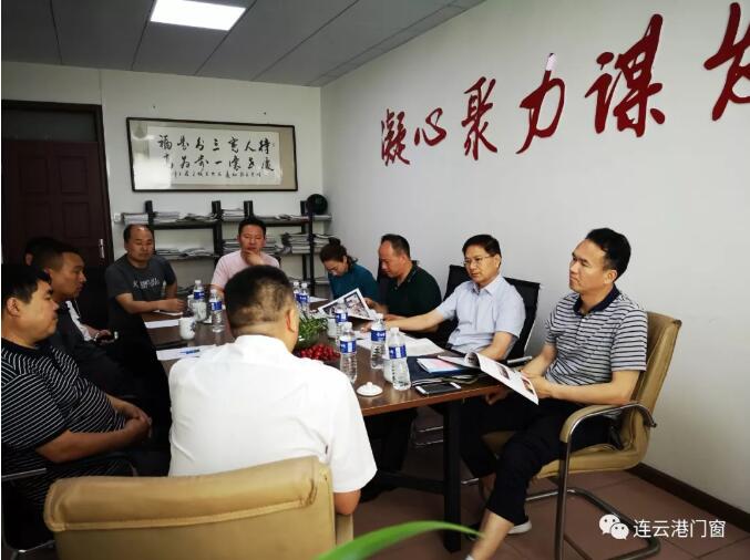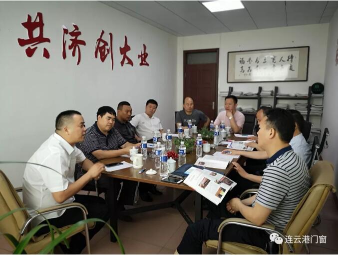 連云港市門窗協會會長、黨支部書記潘國柱攜黨支部副書記蒯學通、副會長孫華才、副秘書長莊東生、理事劉祥強、田傳偉向來訪領導詳細匯報了協會的發展現狀和黨建工作,以及下一步的規劃方案。
