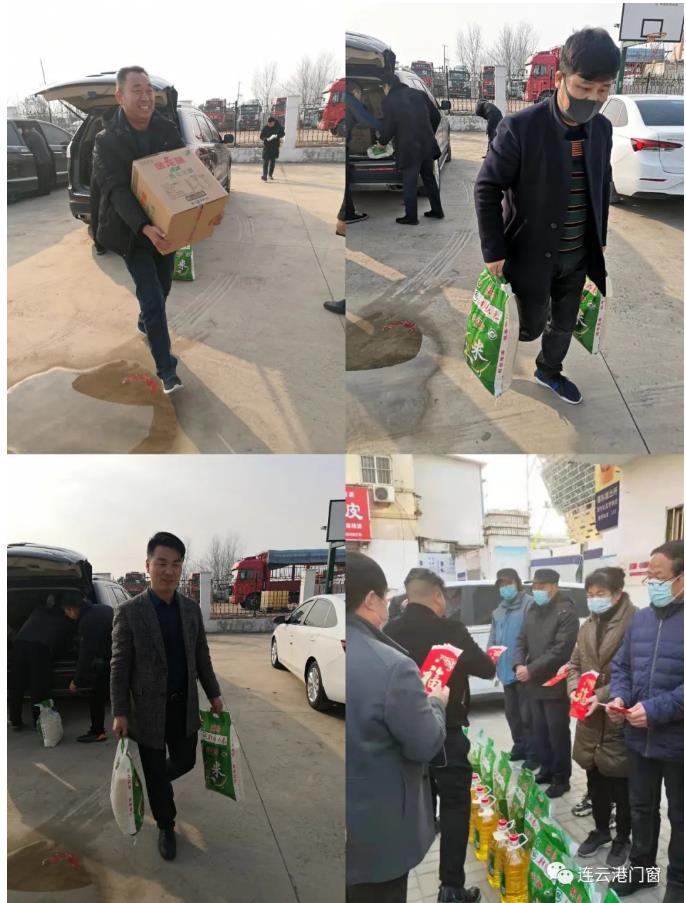 近日,連云港市門窗協(xié)會黨支部書記、會長潘國柱帶領(lǐng)常務(wù)副會長孫華才、陳和兒,副會長徐達、楊武、戴隆強、姚連斌、劉東磊,副書記蒯學(xué)通,監(jiān)事長高德俊,秘書長胡啟楷,執(zhí)行秘書長唐春和,副秘書長莊東生和常務(wù)理事耿華、劉祥強、劉云秋等愛心會員,先后走訪了海州區(qū)“新浦街道菜市社區(qū)”和“錦屏鎮(zhèn)李圩村”,為二十多戶困難群眾送年貨、送現(xiàn)金、送去新年的祝福和問候,讓困難群眾感受社會大家庭的溫暖。